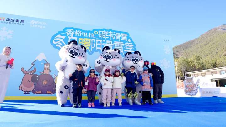 本次活动以“破纬滑雪,香格里拉冬日暖阳滑雪季”为核心理念,突出“在北纬27°的冬日,雪板比阳光更轻盈”的独特体验。开板仪式上,雪豹IP人偶与游客亲切互动,集体鸣笛与彩带放飞环节将现场气氛推向高潮。随后,由专业教练与表演者带来的滑雪表演,融合藏族服饰与雪豹文创元素,以“雪中故事”的形式展现了迪庆深厚的文化底蕴与运动活力。